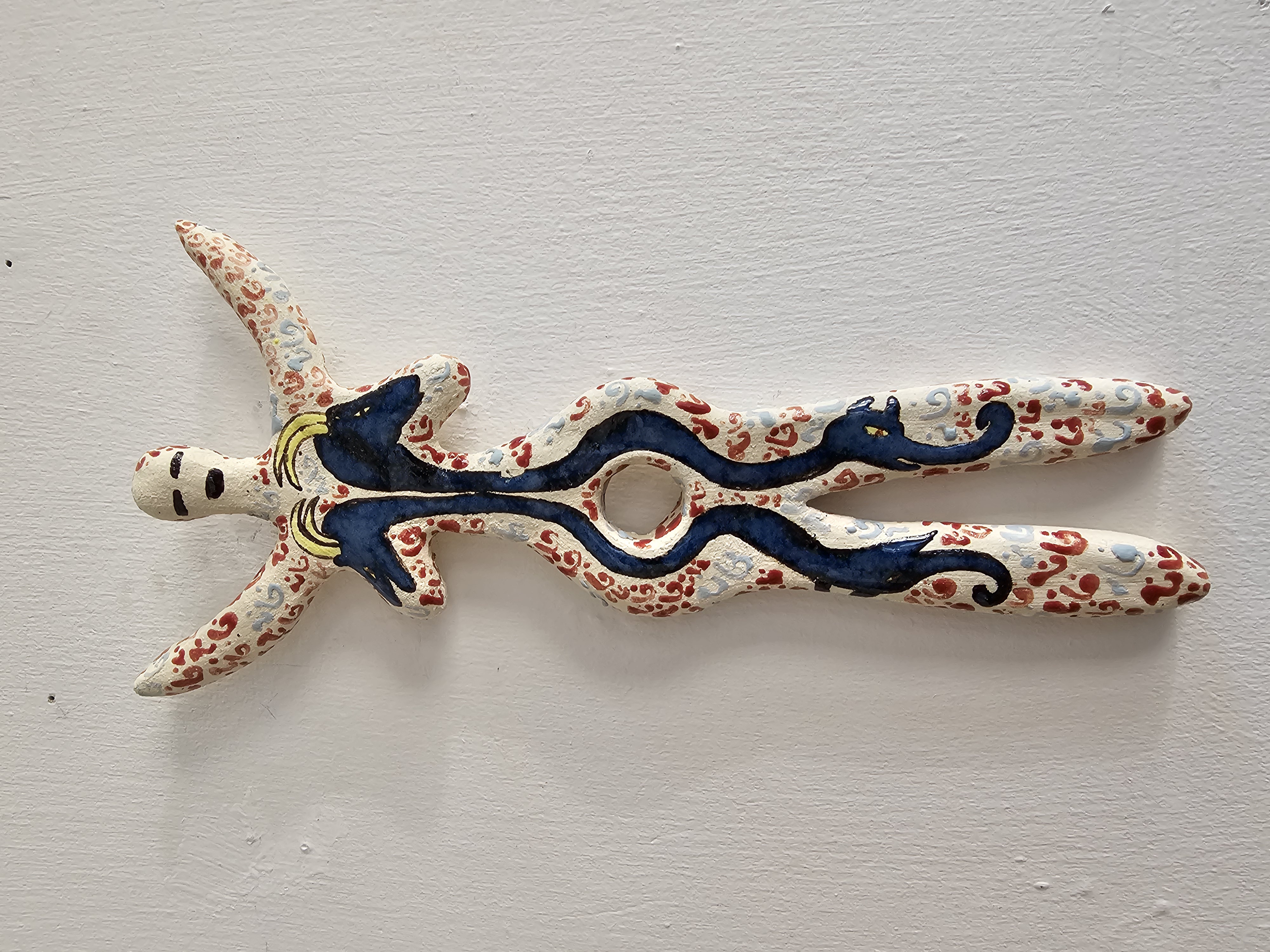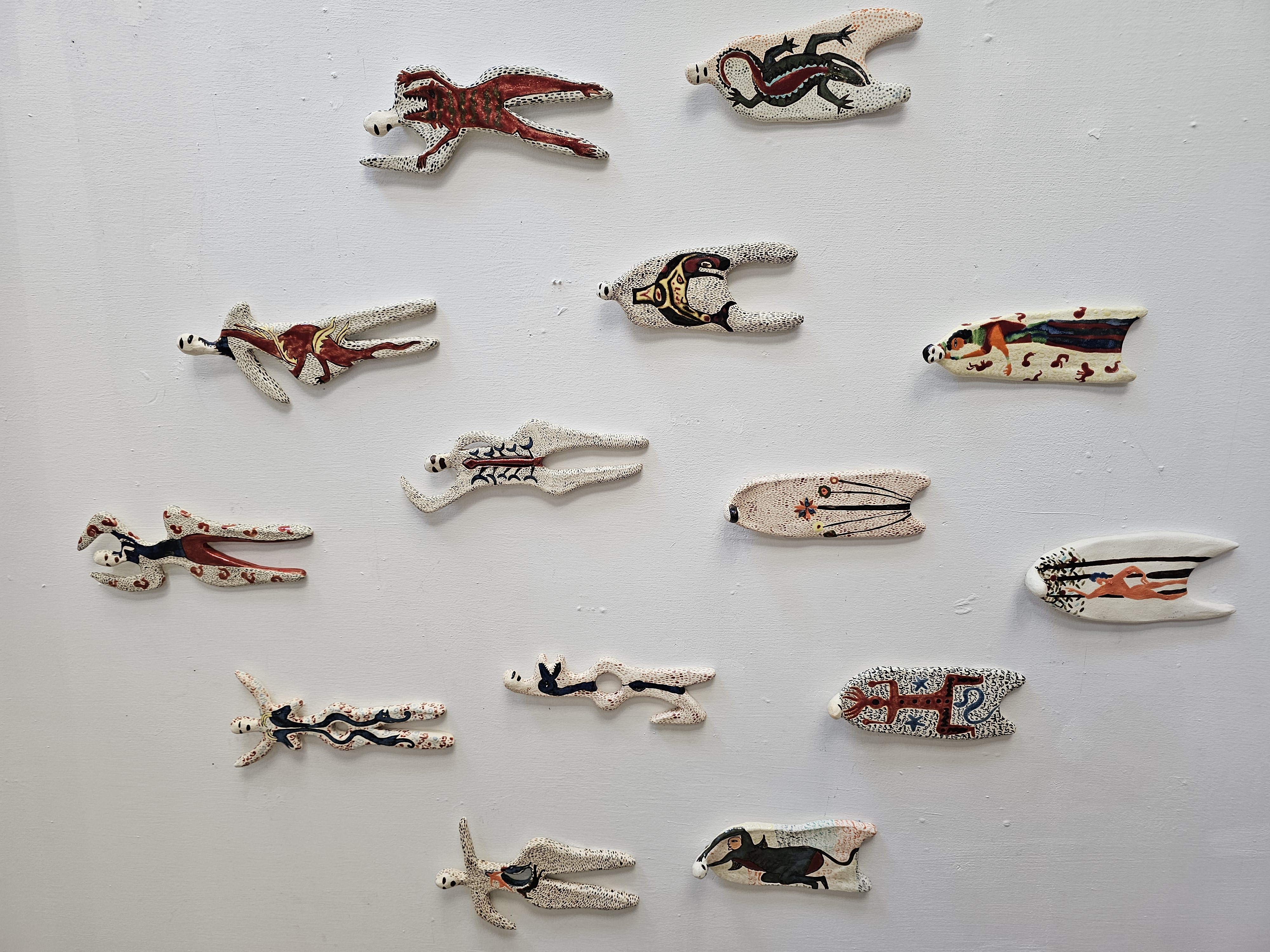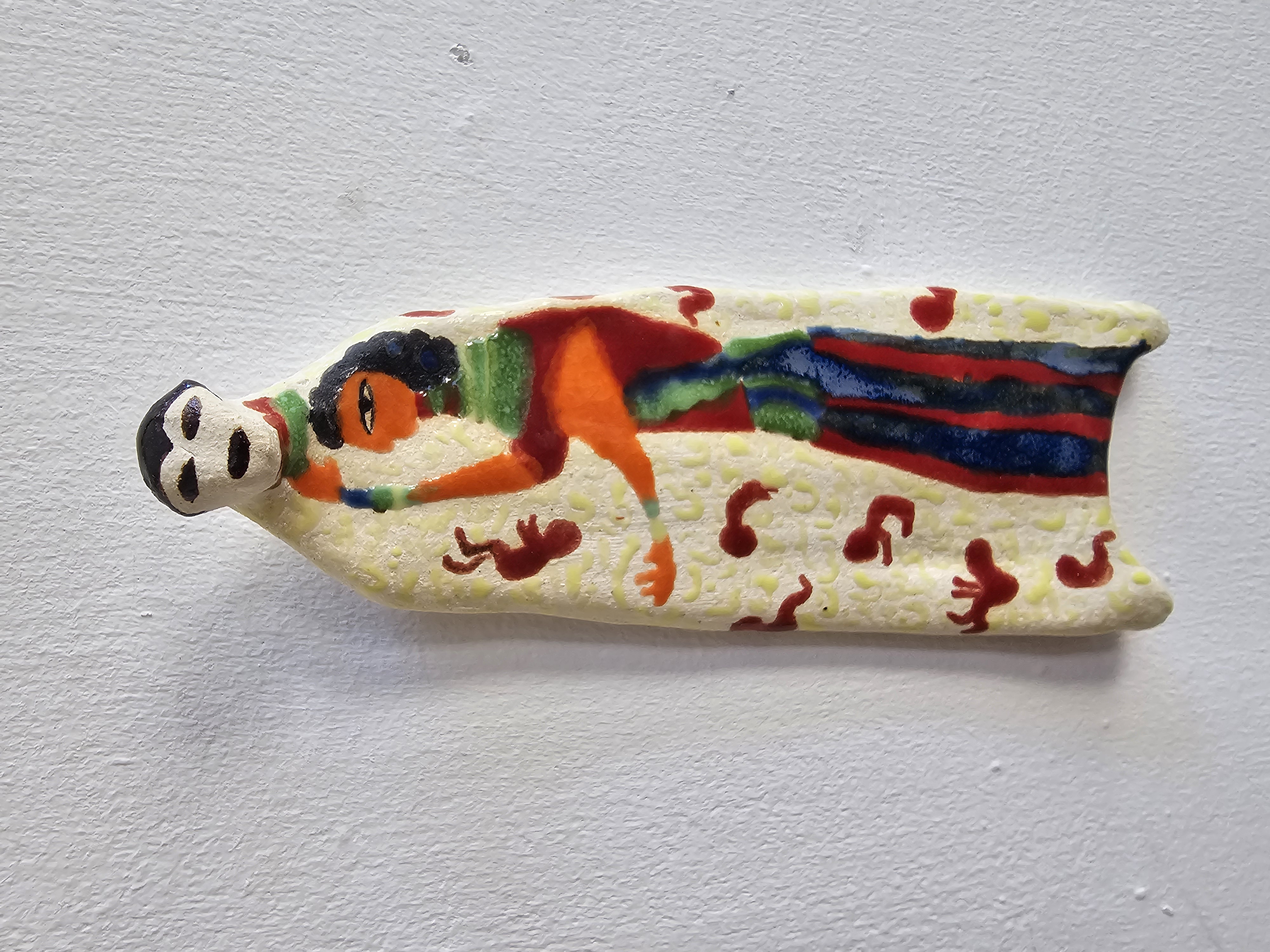 Her ceramic works draw inspiration from ancient and tribal art, invoking Paleolithic and Neolithic imagery, mythological forms, and primordial representations of gestation and identity. Each piece is imbued with diverse patterns, textures, and vibrant colours, forming a symbolic language that celebrates human diversity and individuality.